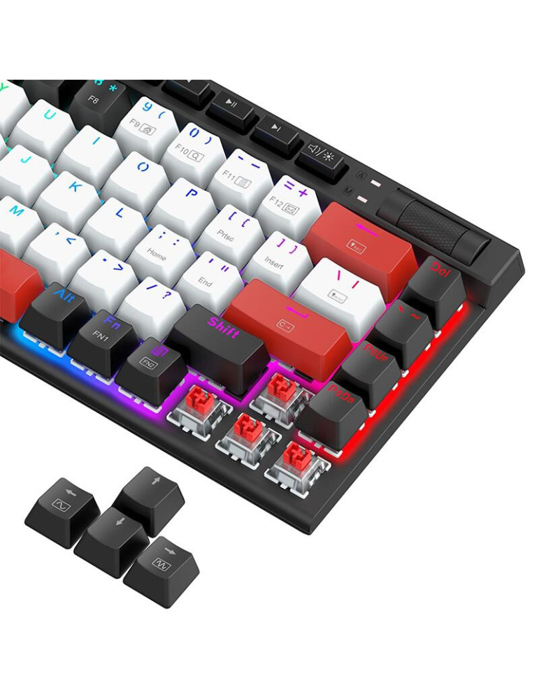 Bluetooth безжична геймърска механична клавиатура Redragon Magic-Wand Mini PRO бели/черни/червени клавиши и Red Switch, RGB, черна - K635WBR-RGB-PRO_RD