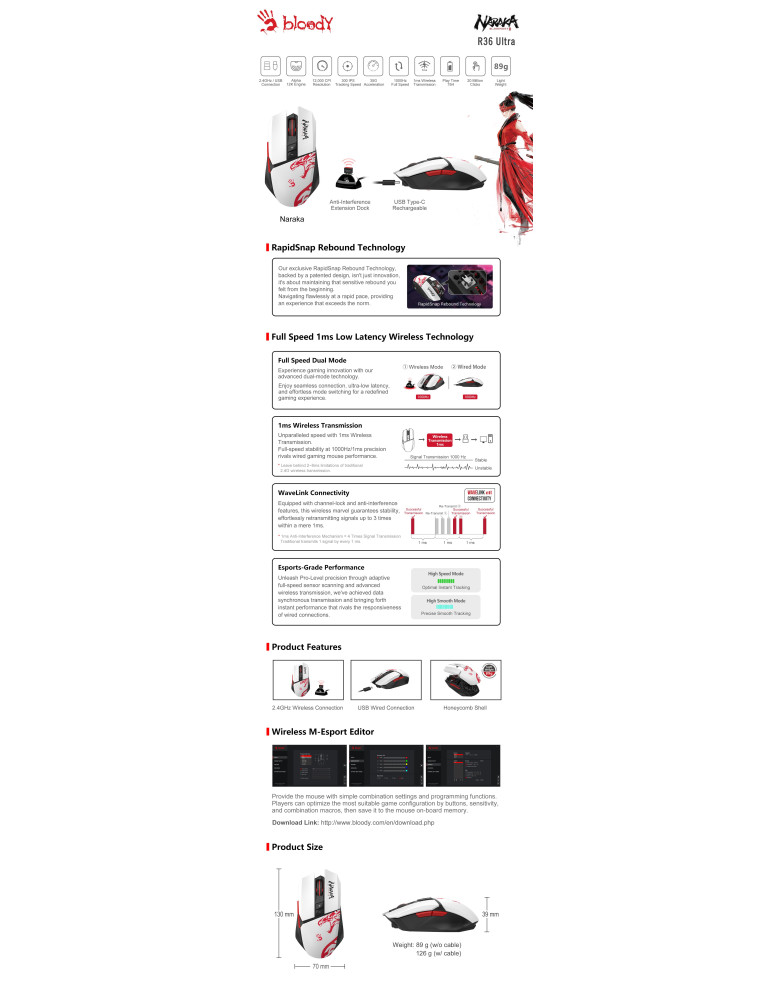 Геймърска безжична мишка A4tech Bloody R36 Ultra Naraka - A4-MOUSE-R36