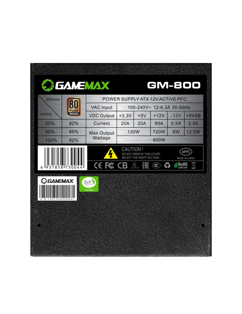 Модулно захранване Gamemax GM-800 800W Bronze, Full Modular - GM-216908000001