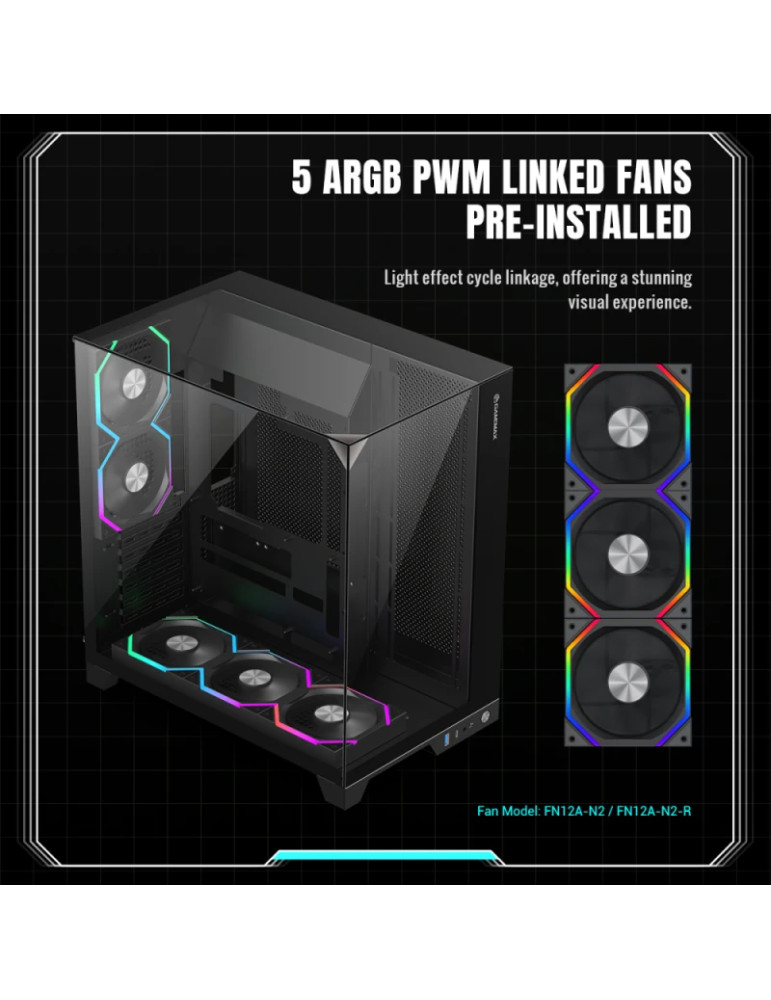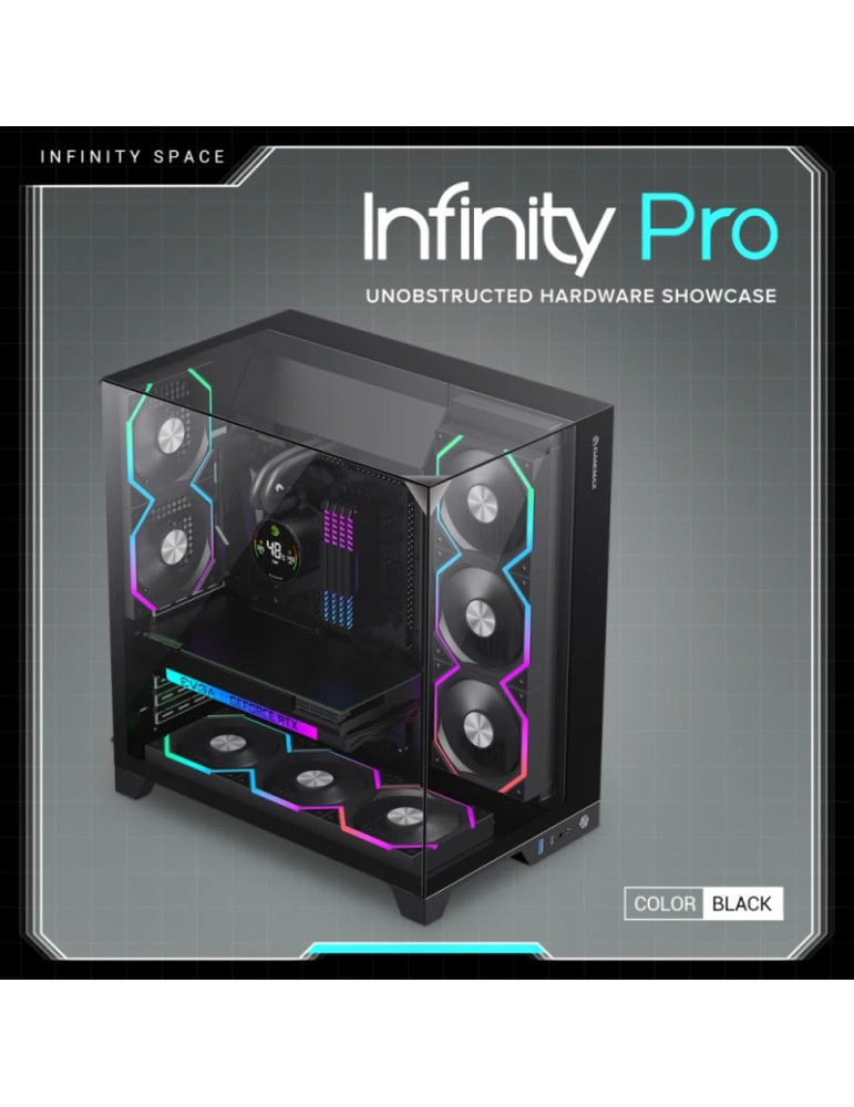 Кутия за компютър Gamemax Infinity Pro Black, 5 x 120 mm Addressable RGB fans, ATX - GM-14100903090