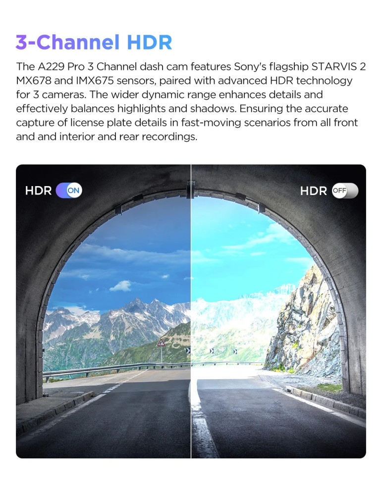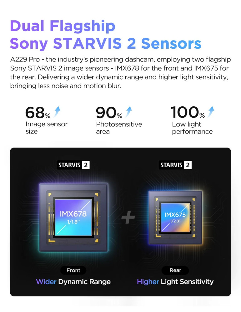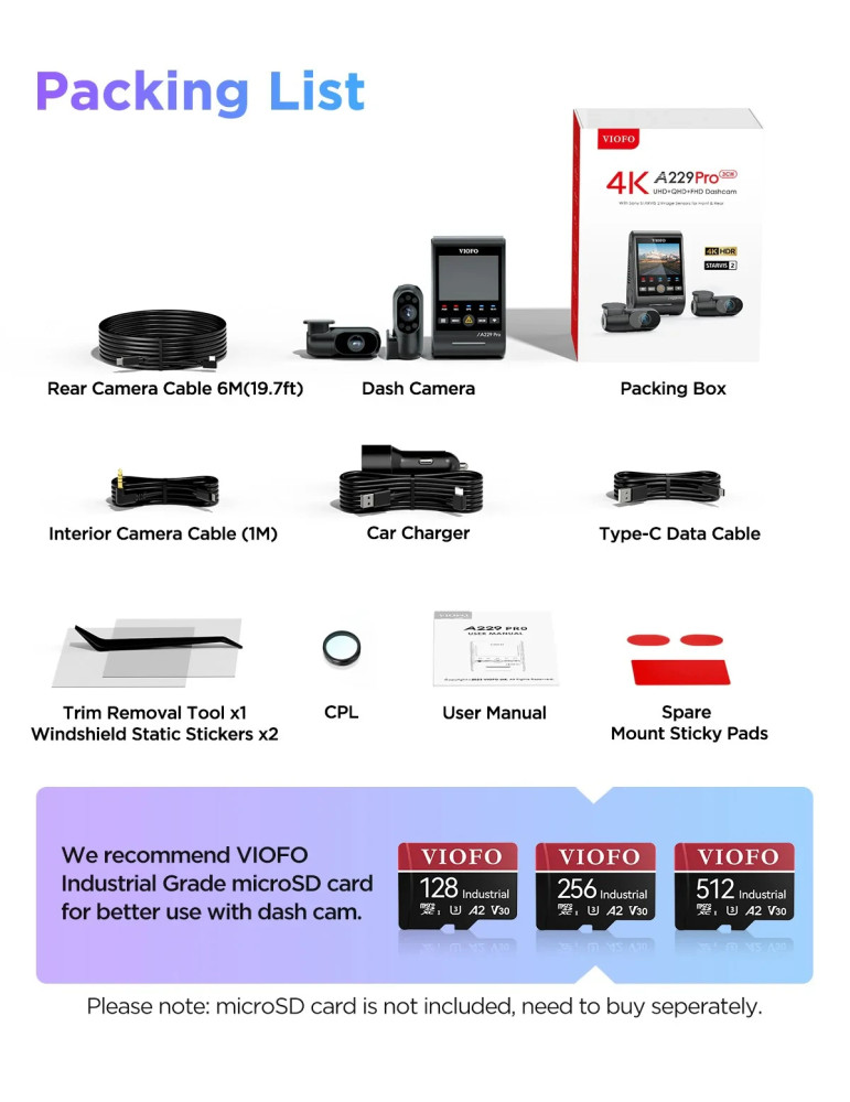 Видео регистратор VIOFO Dash Cam A229 Pro 3 Channel - 4K, HDR, Dual Sony STARVIS 2, GPS, Bluetooth - VIOFO-A229-PRO-3CH