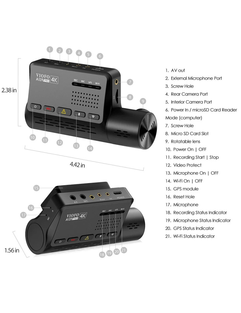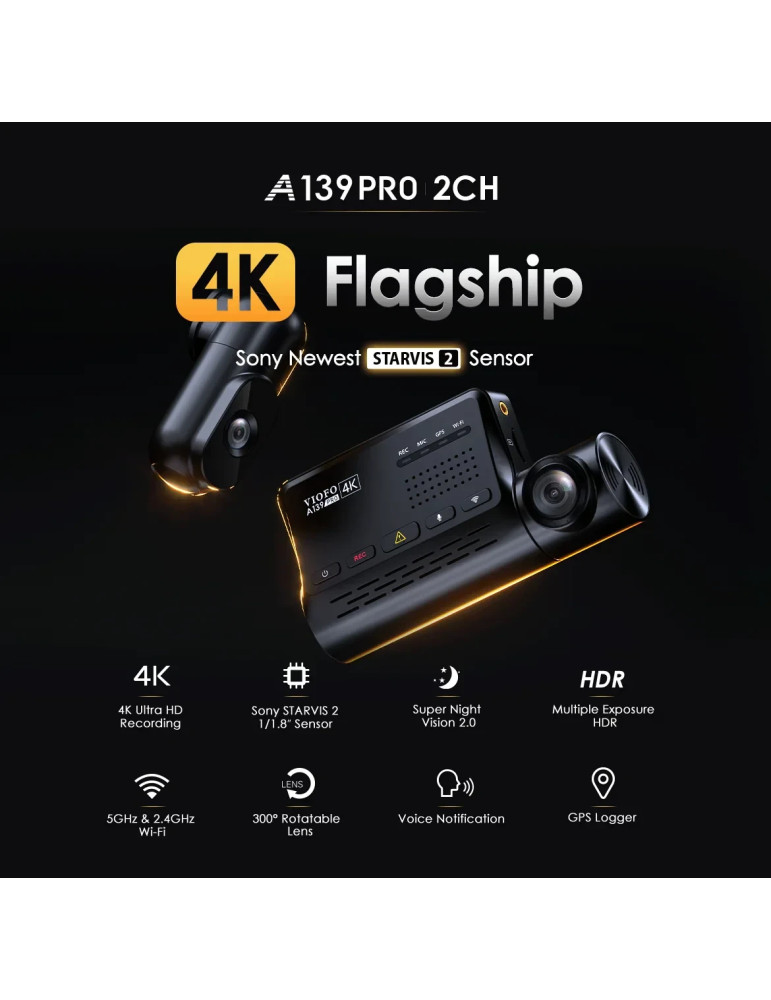 Видео регистратор VIOFO Dash Cam A139 PRO 2 Channel - 4K UHD, Sony STARVIS 2, GPS - VIOFO-A139-PRO-2CH