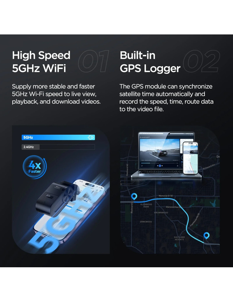 | ФУНКЦИИ | 5GHz Wi-Fi Auto Event Detection GPS HDR Low Bitrate Recording Parking Mode Super Night Vision 2.0 Time Lapse Recording Voice Control |