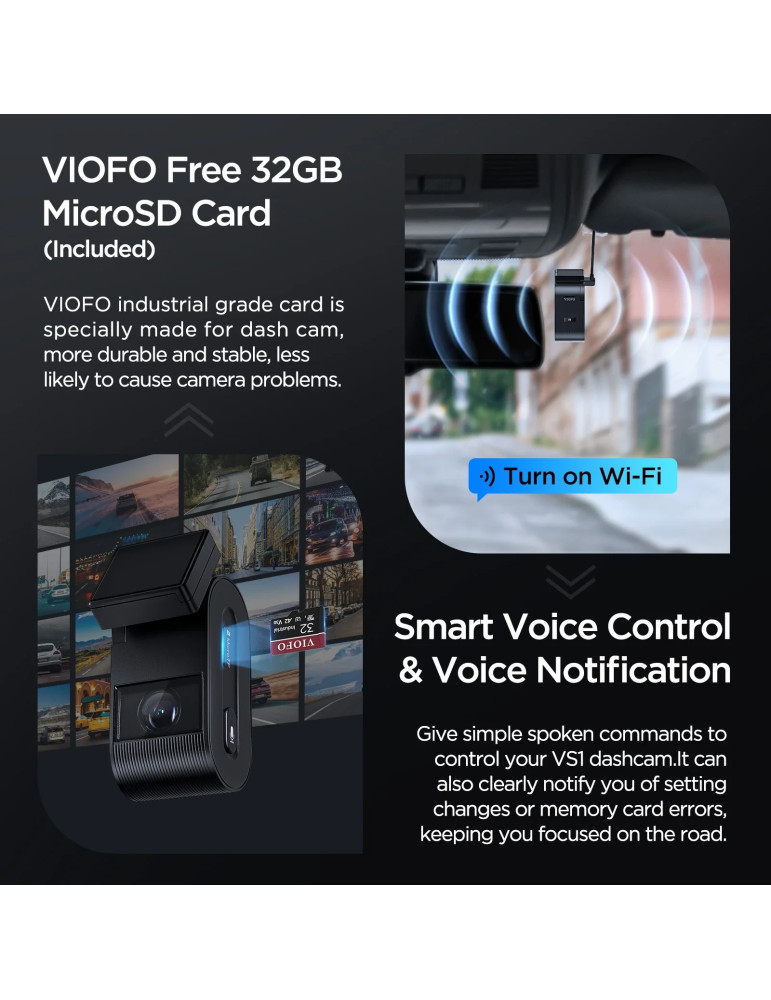 Видео регистратор VIOFO Dash Cam VS1 - 2K, Sony STARVIS 2, 32GB SD Card Included, GPS, Bluetooth - VIOFO-VS1