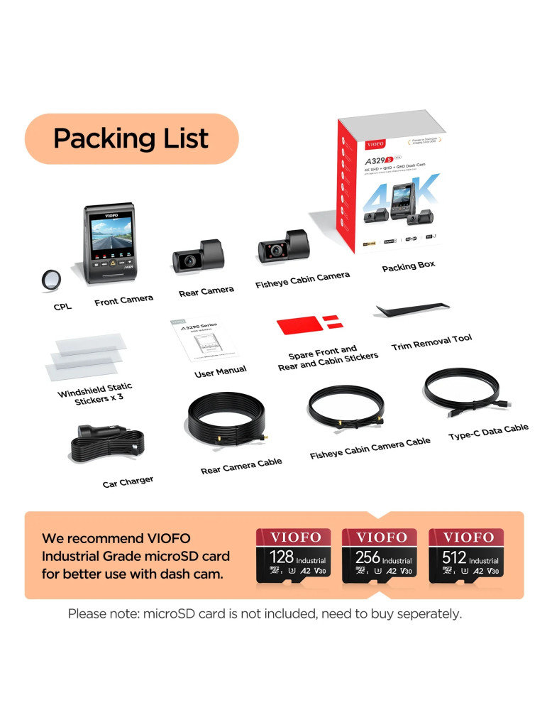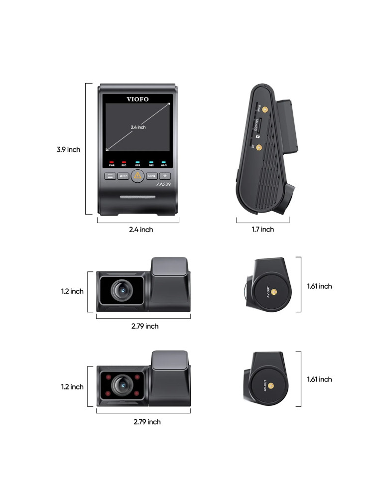 Видео регистратор VIOFO Dash Cam A329S 3 Channel - 4K, HDR, Triple Sony STARVIS 2, GPS, Bluetooth, FOV Fisheye Cabin - VIOFO-A329S-3CH