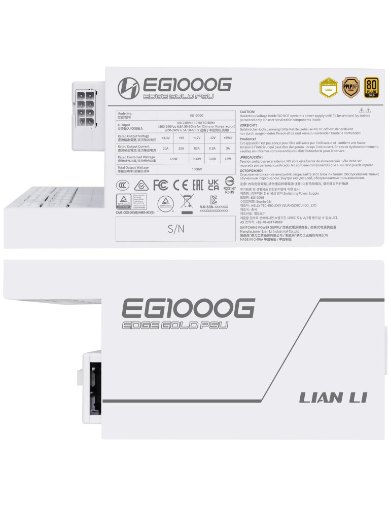 Захранване Lian Li EDGE 1000W 80 Gold PCIe 5.1, ATX 3.1 - Бяло - G9P.EG1000G.WH00.EU