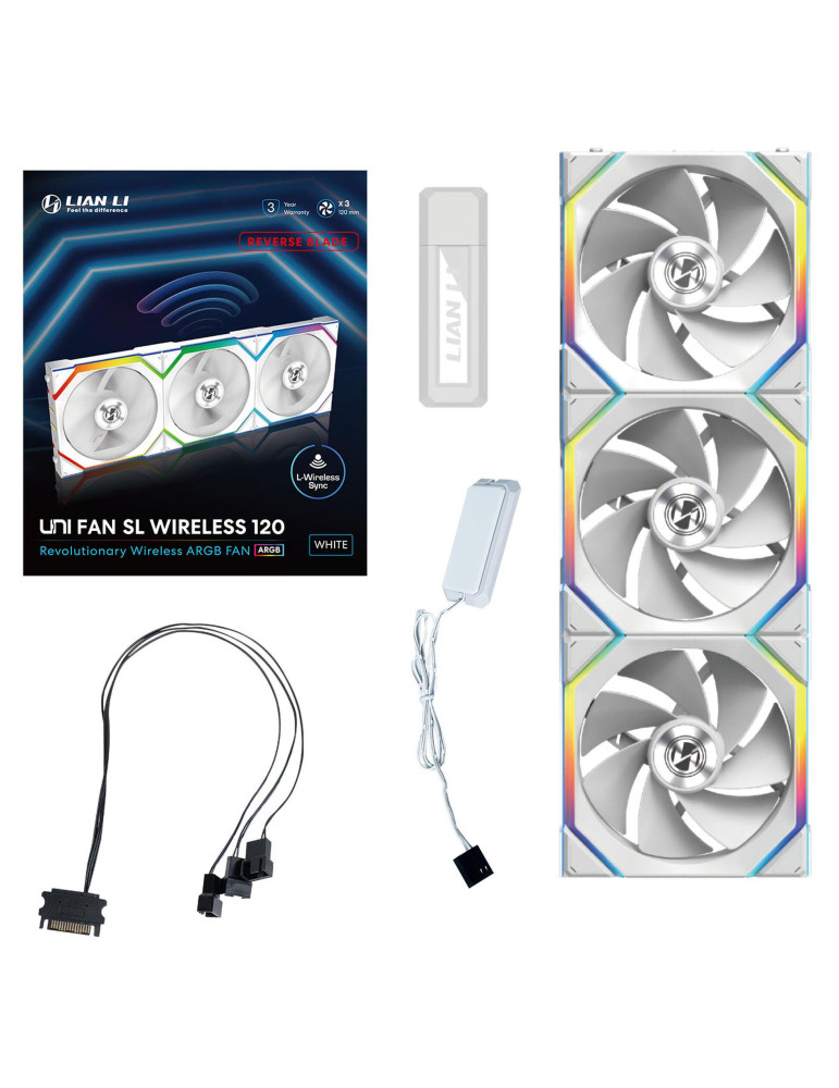 Комплект вентилатори 3бр Lian Li UNI FAN SL Wireless ARGB PWM Reverse Blade - 120 mm Бели Контролер - G99.12RSL1W3W.00