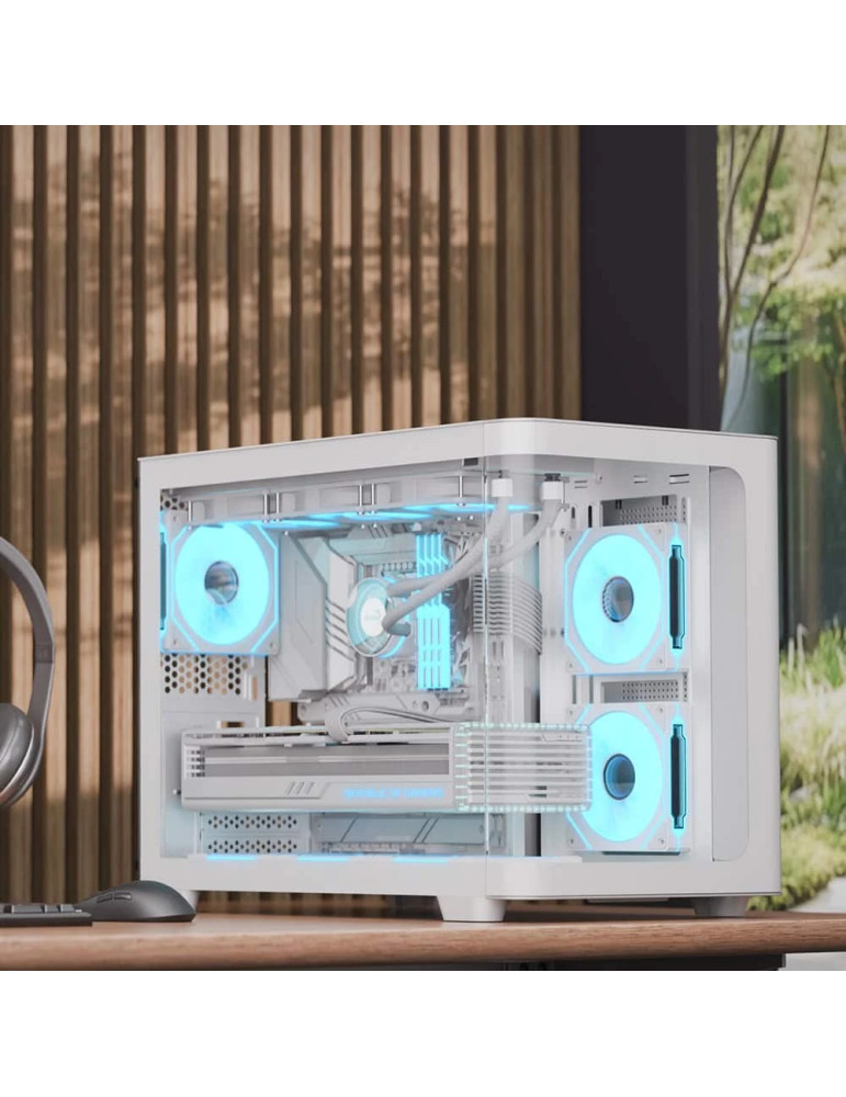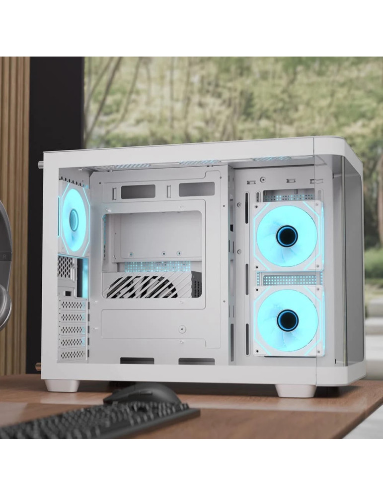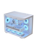 | ДОПЪЛНИТЕЛНИ | Dual chamber design for improved cable management Each included fan has special ;mirage; infinity mirror lighting effect Includes 3 SSD slots and 2 HDD drive bays Magnetic top and bottom filters allow for easy cleaning and maintenance Mini-tower case featuring full tempered glass front and side panels for interior viewing Supports 9 total fan slots for high cooling potential |