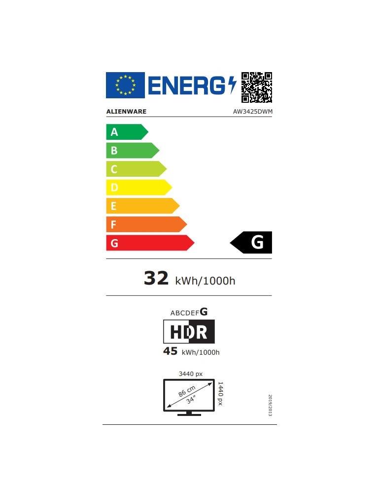 Монитор Dell Alienware AW3425DWM, 34" Curved WQHD LED AG 21:9, VA, 1ms GTG, 3000:1, 400 cd/m2, 3440x1440, 180 Hz, 95% DCI-P3, HDR, VRR, AMD FreeSync, VESA AdaptiveSync, HDMI, DP, USB 5Gbps, PIP, PBP, Height Adjustable, Pivot, Tilt, Black