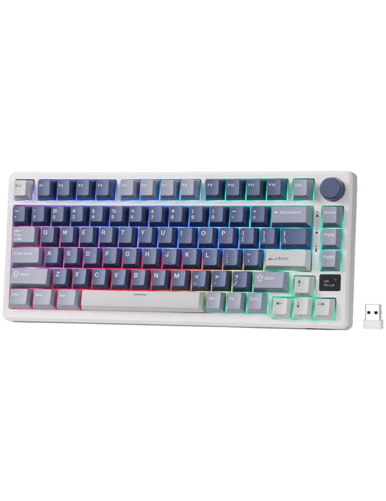 Безжична геймърска механична клавиатура Royal Kludge M75 Ocean Blue 75%, Display Screen K Silver Switch - RK-M75-OCBLU-KSLVSW-US