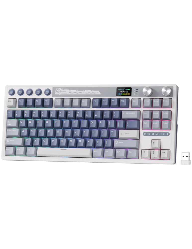 Безжична геймърска механична клавиатура Royal Kludge M87 Ocean Blue TKL, Display Screen Cream Switch - RK-M87-OCBLU-CRMSW-US