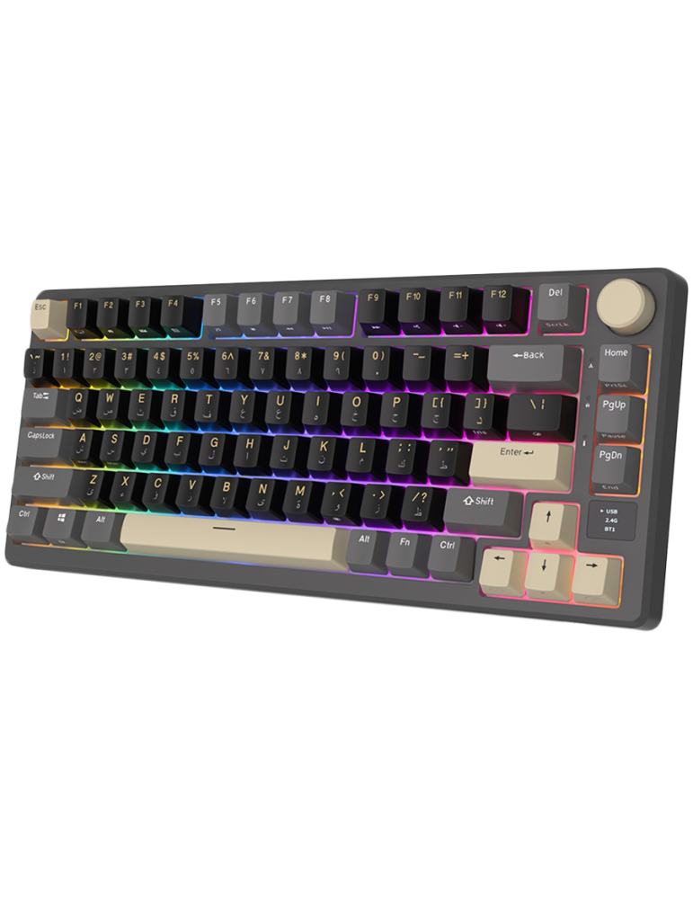 Безжична геймърска механична клавиатура Royal Kludge M75 Phantom 75%, Display Screen K Silver Switch - RK-M75-PHNTM-KSLVSW-US