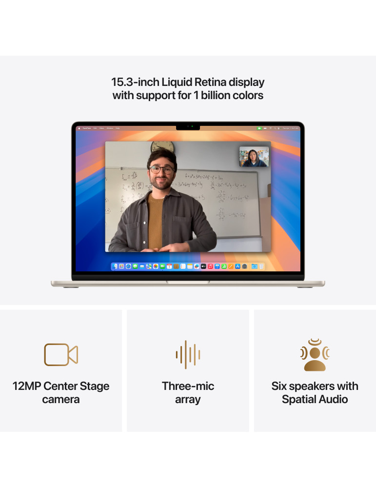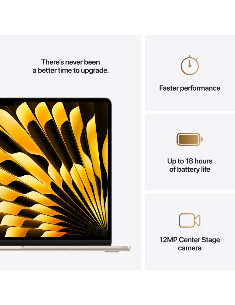 Лаптоп Apple MacBook Air 15.3, M4, 15.3" , 24GB RAM, 512GB SSD, 10C GPU, STARLIGHT - mc6k4ze/a