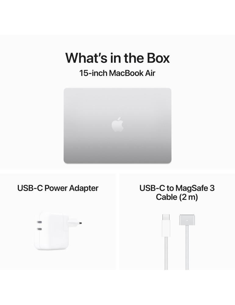 Лаптоп Apple MacBook Air 15.3, M3, 15.3" , 16GB RAM, 256GB SSD, 10C GPU, SILVER - mc9e4ze/a