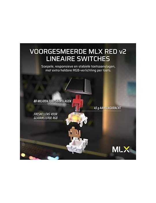 Геймърскa безжична/блутут механична клавиатура Corsair K70 CORE TKL RGB, Corsair MLX Red суич - CH-914901E-NA
