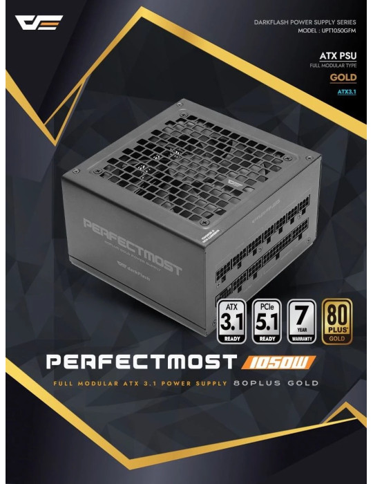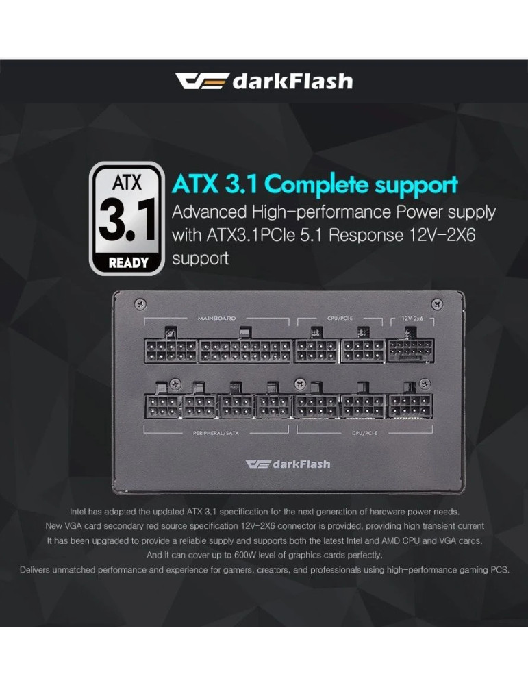 Модулно захранване Darkflash 1050W Gold, ATX 3.1, PCIe 5.1 - PMT1050 A3 - PMT1050-A3
