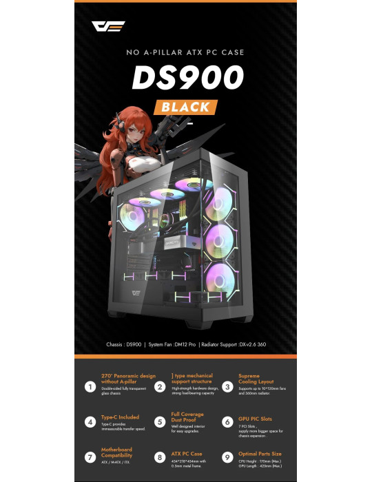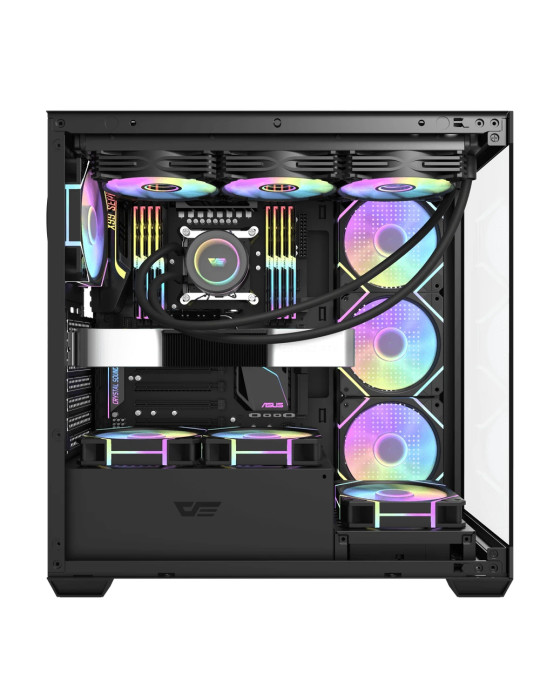 Кутия за компютър Darkflash DS900 Black, ATX, 7 x 120 mm A-RGB fans included, USB-C - DS900-7F-BK