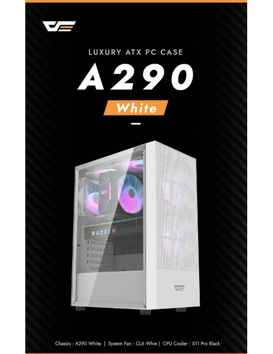 Кутия за компютър Darkflash A290 White, ATX, 3 x 120 mm RGB fans included - A290-WH