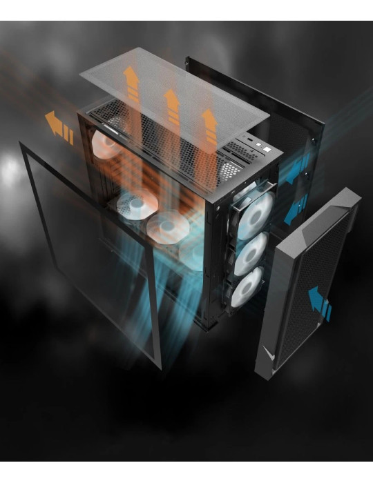 ВКЛЮЧЕНИ ВЕНТИЛАТОРИ | Front: 4 x 120 mm A-RGB Rear: 1 x 120 mm A-RGB |
