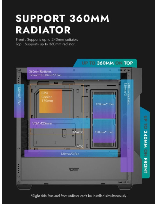 ПОДДРЪЖКА НА ВОДНО ОХЛАЖДАНЕ | 120 mm - Отгоре 120 mm - Отпред 240 mm - Отгоре 240 mm - Отпред 360 mm - Отгоре |
