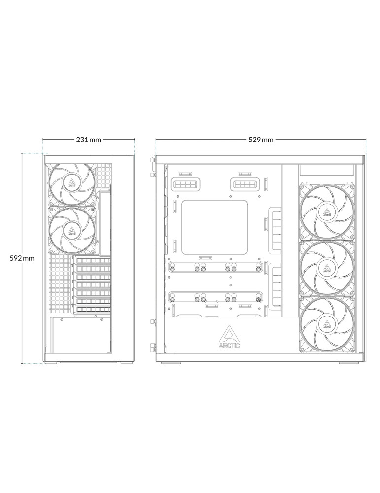 Кутия за компютър Arctic Xtender (Black), E-ATX, 5 A-RGB Fans included - ACPCC00015A