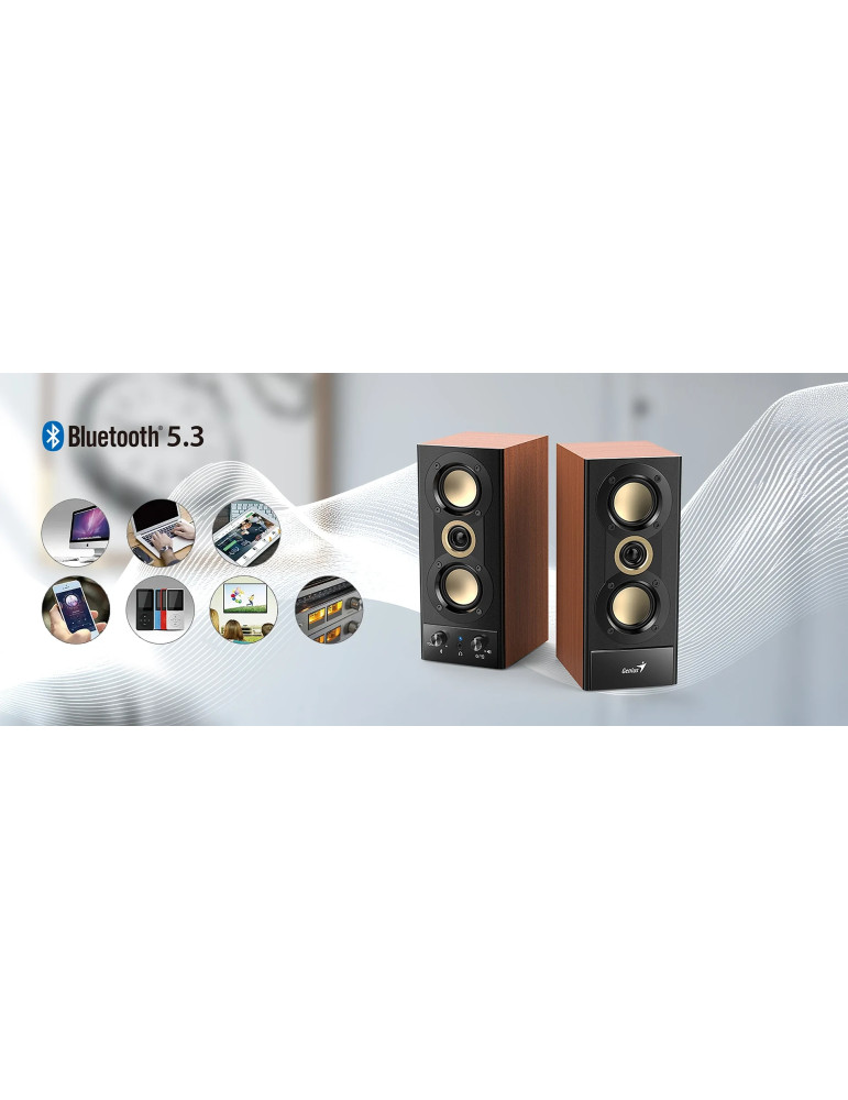 Bluetooth тонколони Genius SP-HF800BT, 2.0 20W RMS, Bluetooth 5.3, Wood - GENIUS-SP-HF800BT