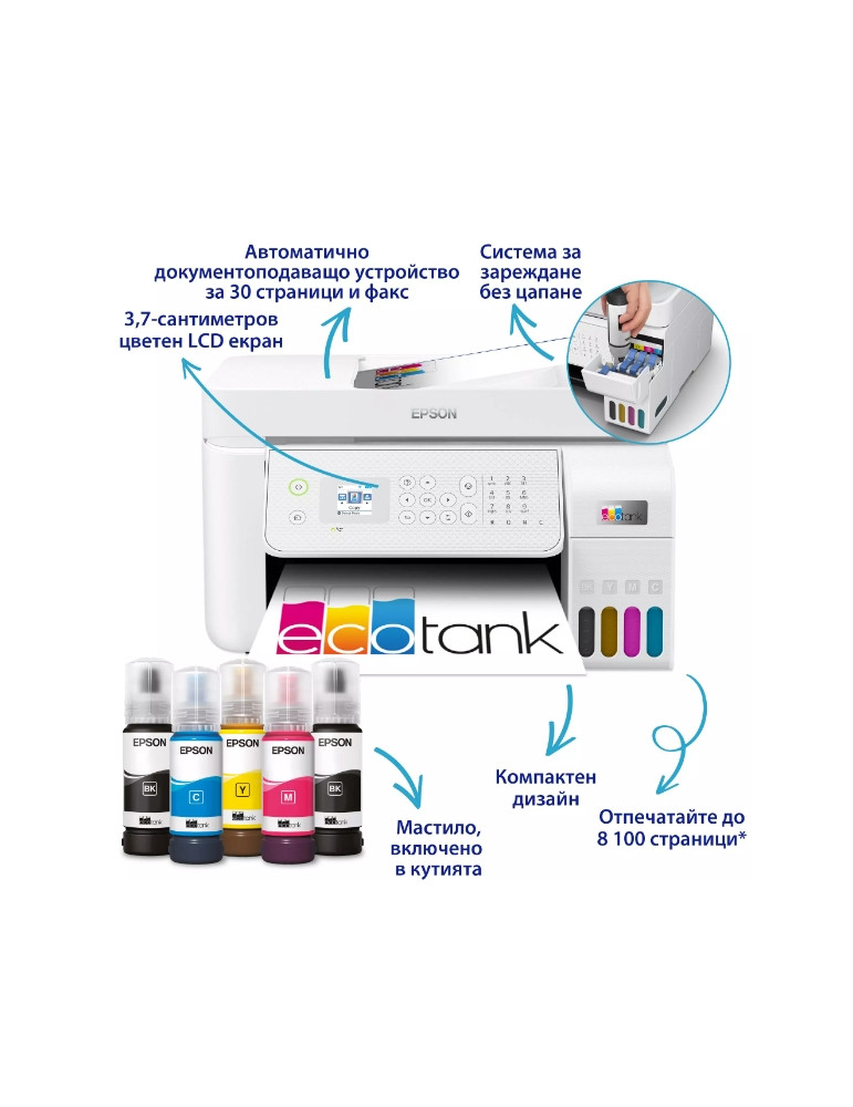 | Консумативи | 103 EcoTank Cyan Ink Bottle, 103 EcoTank Black Ink Bottle, 103 EcoTank Magenta Ink Bottle, 103 EcoTank Yellow Ink Bottle |