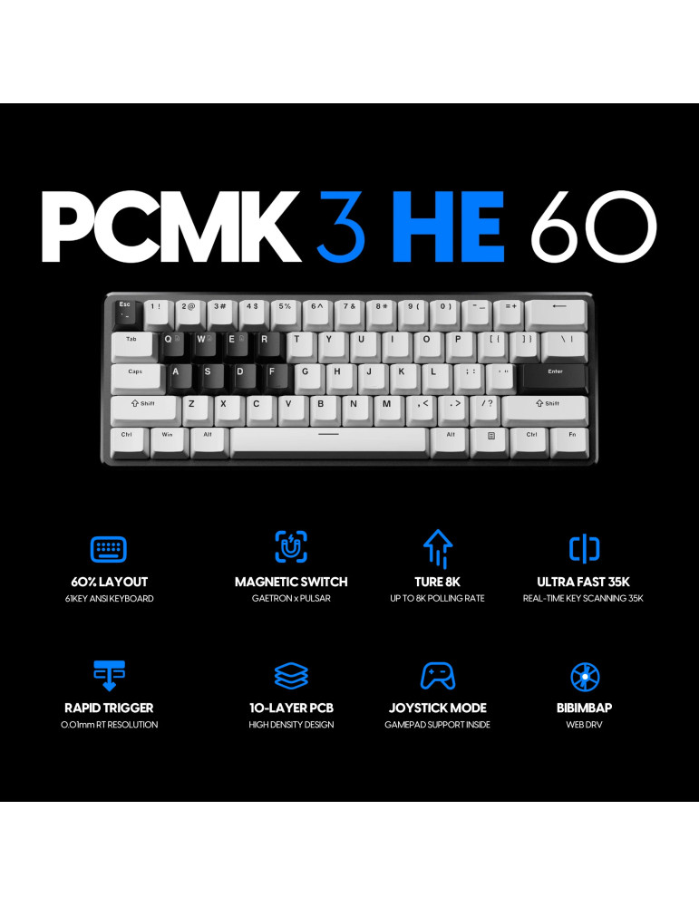 Професионална геймърска механична клавиатура Pulsar PCMK 3 HE 60 ANSI Black - 8K, Gateron Magnetic Switches [Linear] - PCMK3HE601B