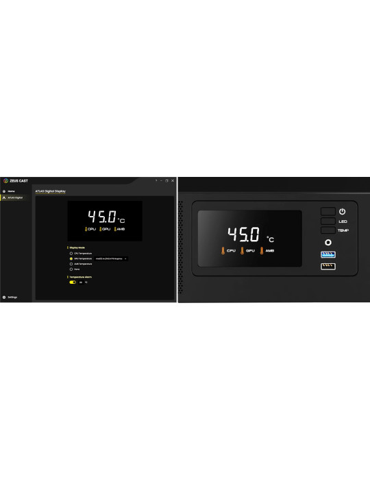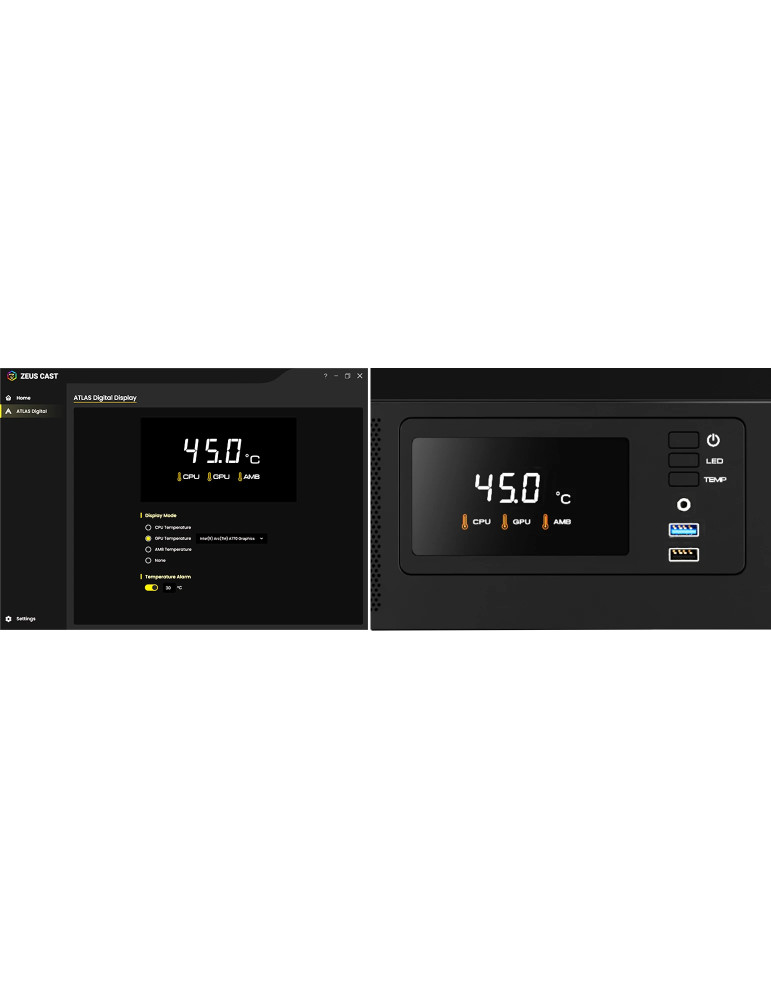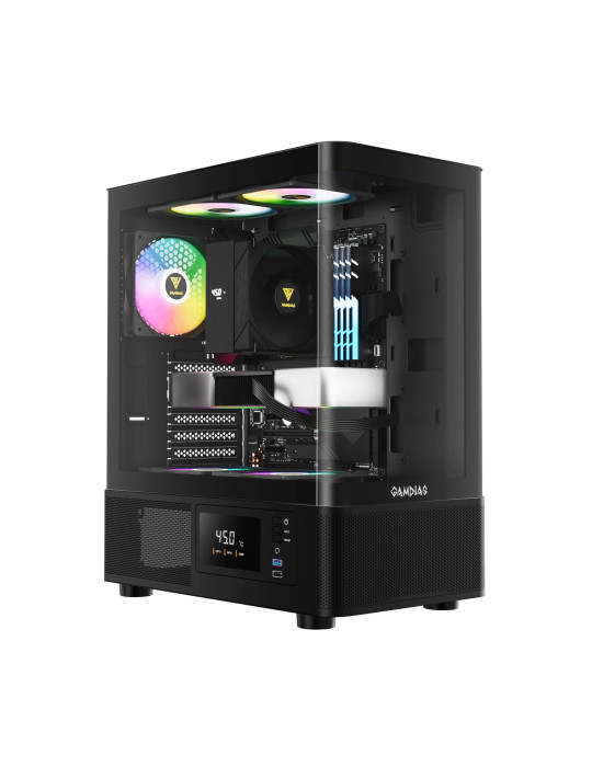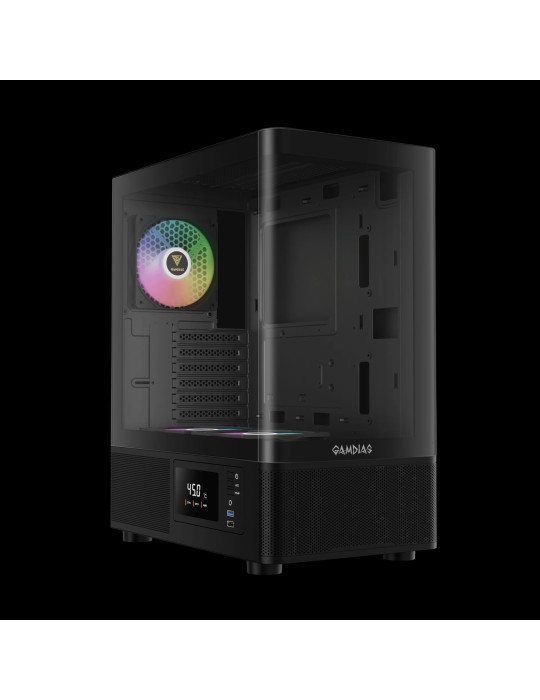 Кутия за компютър Gamdias ATLAS E2, ATX, 3 x 120 mm A-RGB, Digital Display, Curved Glass - GAMDIAS-ATLAS-E2-CG