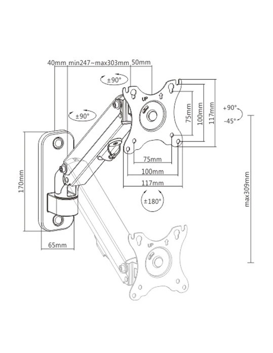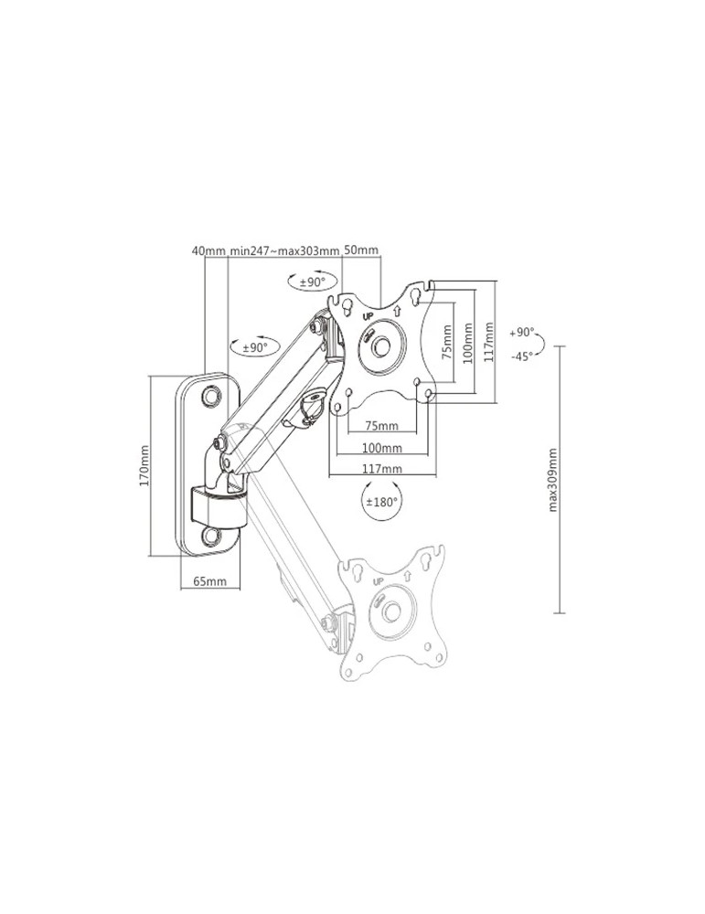 | ДОПЪЛНИТЕЛНИ | Arm rotates, extends and retracts, tilts to change reading angles, and allows to rotate display from landscape-to-portrait mode, etc Built-in cable management for an organized and neat workspace Enables easy ergonomic positioning for reduced strain Works with almost any LCD TV/monitor (max. 27;) |