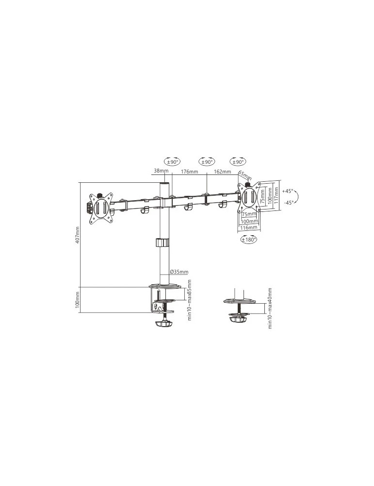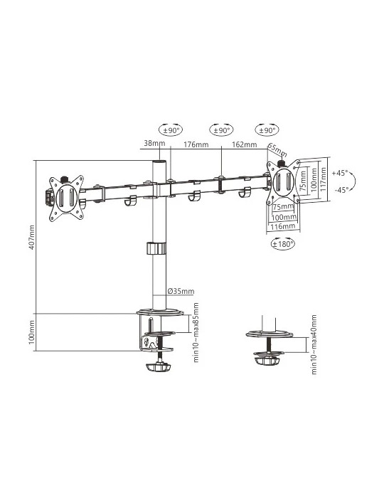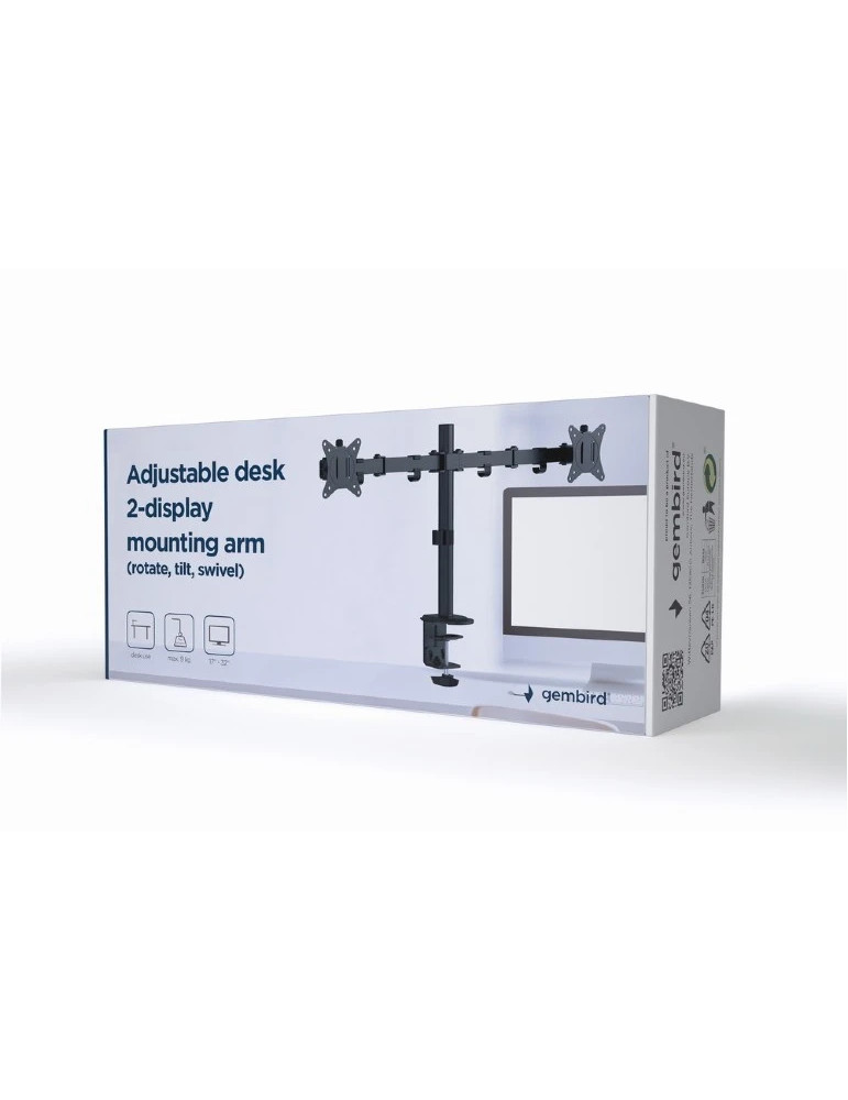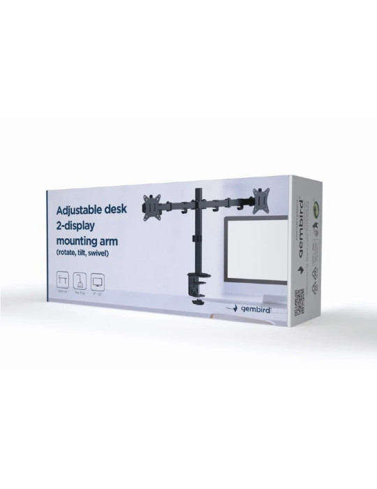 | ДОПЪЛНИТЕЛНИ | Arms allow to swivel, extend, retract or tilt your display and enables rotating the displays from landscape-to-portrait mode, etc Built-in cable management for an organized and neat workspace Monitor desk mount with double monitor arm Strong desk clamp or grommet for easy and secure fixation on your desk Works with almost any LCD monitor (max. 32;) |