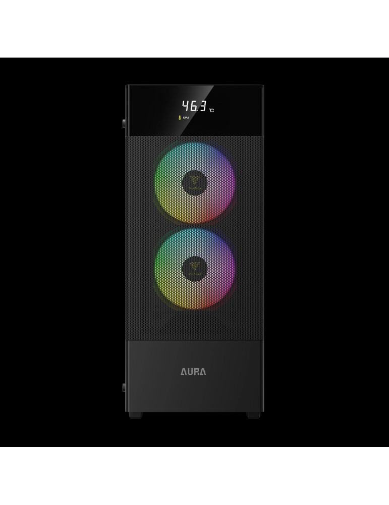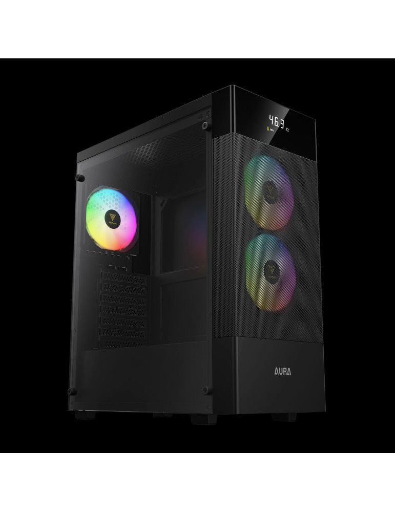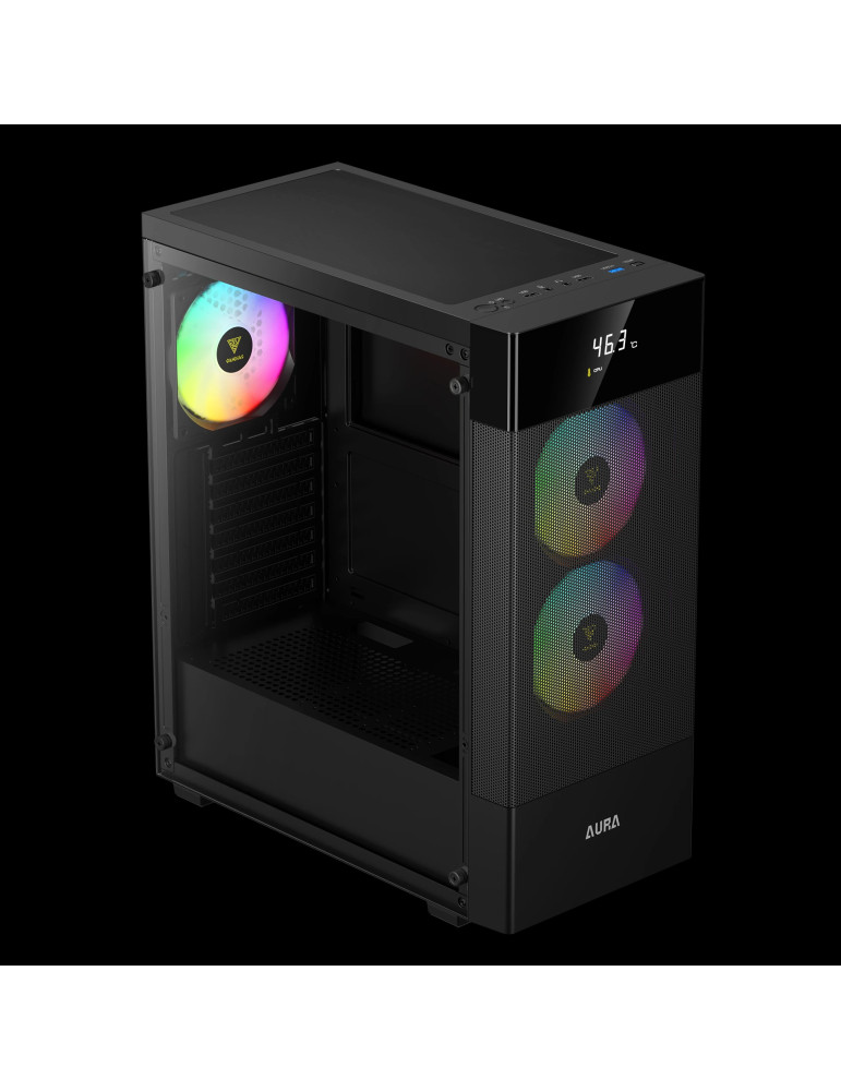 Кутия за компютър Gamdias AURA GC5 ELITE ARGB Black, ATX, Addressable RGB, Mesh, Digital Display - GAMDIAS-AURA-GC5-ELITE-ARGB-BK