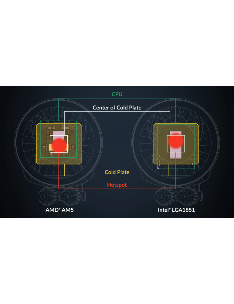 | ДОПЪЛНИТЕЛНИ | Easy Installation Includes MX-6 Thermal Paste Integrated Cable Management Integrated VRM Fan Intel Contact Frame Limited Compatibility with Certain Motherboards Offset Mounting for Intel and AMD P14 Pro Fans Premium Tubing |