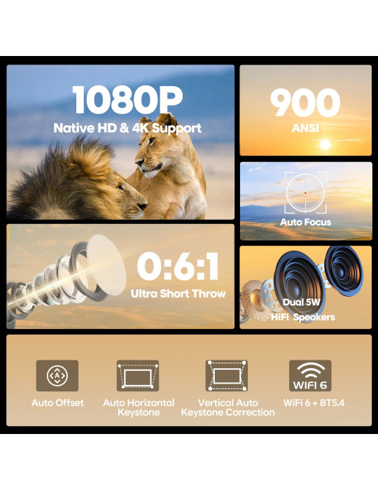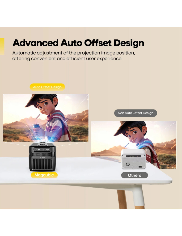 | ДРУГИ | Auto Focus Auto Offset ; Auto Focus ; 0.6:1 Projection Throw Ratio ; 900 ANSI Built-in Dual 5W HiFi Stereo Speakers Magcubic Ultra Short-Throw Home Theater Projector Simplified Control with Google Voice Remote |