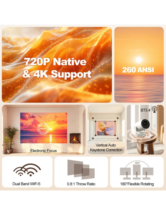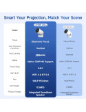 | ДРУГИ | Adjust Focus Effortlessly with Electronic Focus Auto-Vertical Image Alignment Easy setup for your phone/iPad/laptop UItra Faster Dual-Band WiFi 6 Vivid Brightness for Crisp Immersive Viewing |