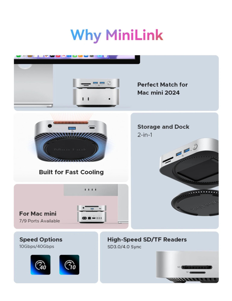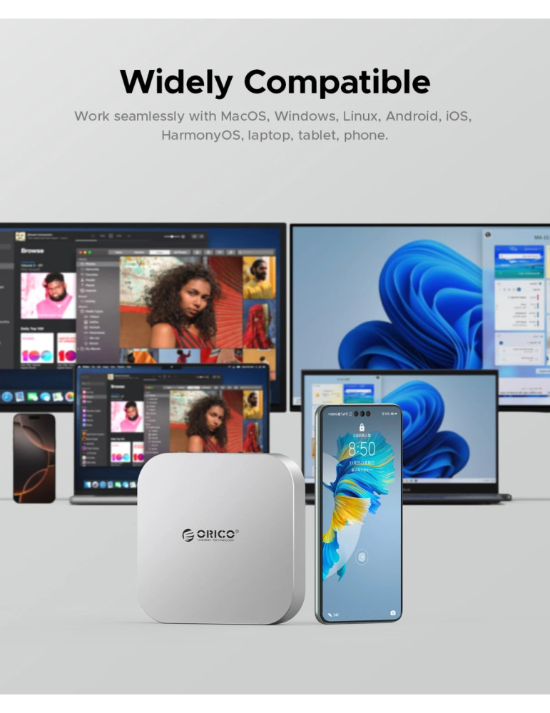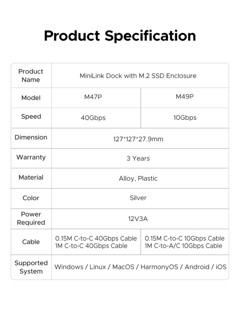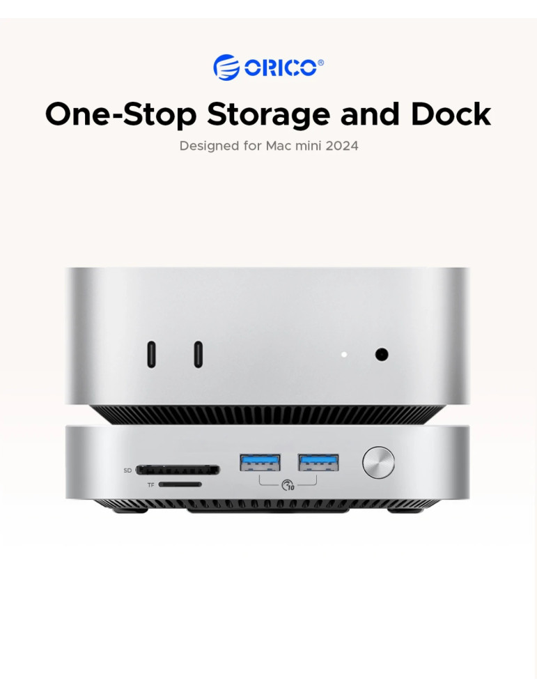 Докинг станция Orico SSD Docking station MiniLink M49P-EU-SV M.2 NVMe - USB-C(10Gbps) x 1, USB3.2 x 2, USB2.0 x 2, M.2 x 1, Audio, SD/TF 4.0 - ORICO-M49P-EU-SV-BP
