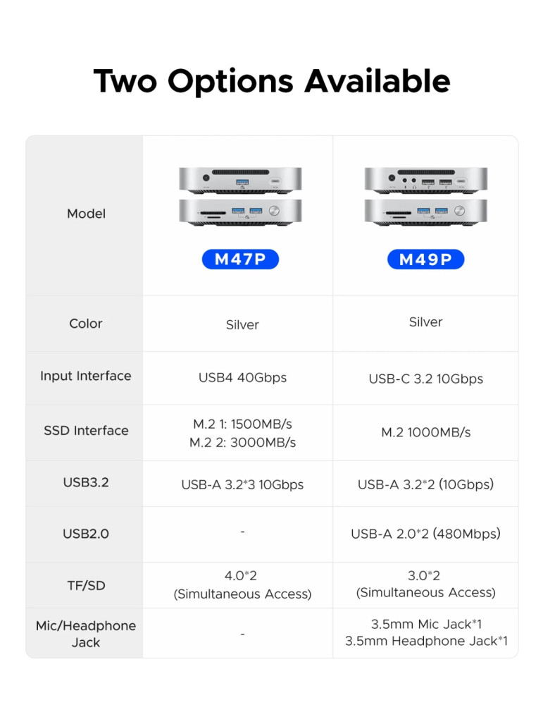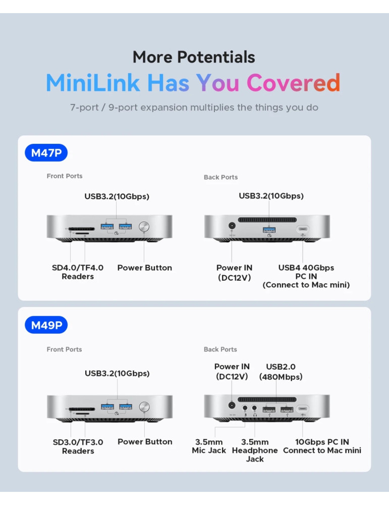 | ПОРТОВЕ | 3.5 mm Stereo jack x 2 SD TF USB-A (10Gbps) x 2 USB2.0-A x 2 |