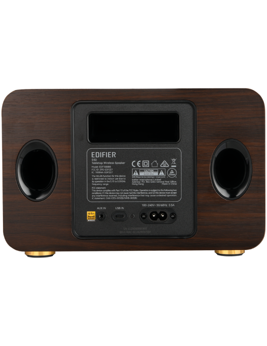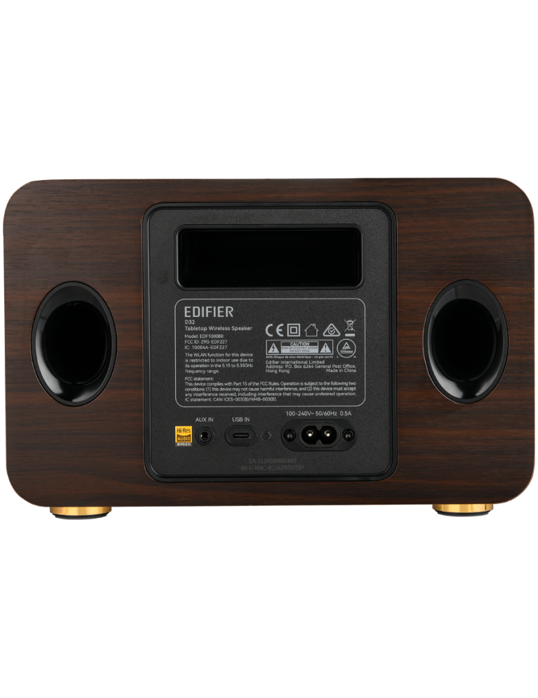 Bluetooth колони Edifier D32 2.1 Speaker, BT V5.3, Wi-Fi, AUX, USB-C, 1x 4-inch Midrange Driver, 2x 1-inch Tweeters, 60W (RMS), Black Walnut - D32-BL WALNUT