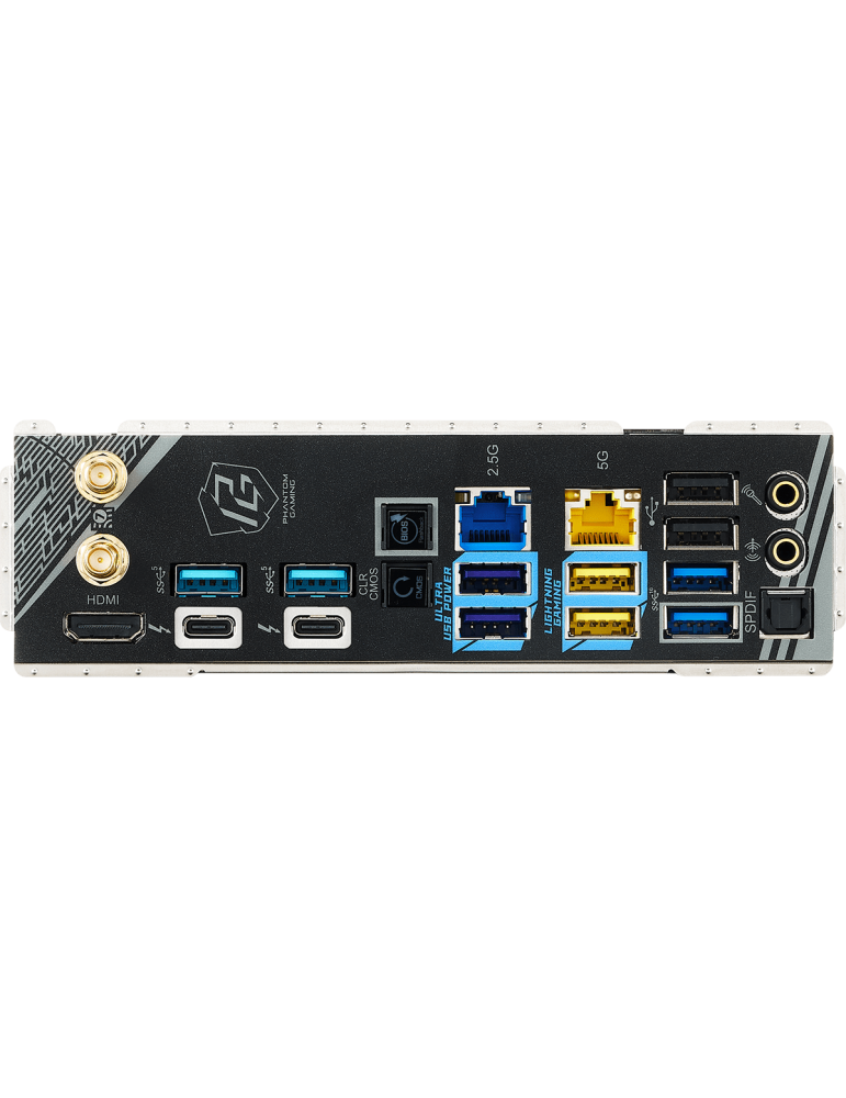 | Вх/Изх | 2 x Antenna Ports;1 x HDMI Port;1 x Optical SPDIF Out Port;2 x Thunderbolt™ 4/USB4 Type-C Ports (40 Gb/s);4 x USB 3.2 Gen2 Type-A Ports (10 Gb/s);4 x USB 3.2 Gen1 Ports;2 x USB 2.0 Ports;2 x RJ-45 LAN Ports;1 x Clear CMOS Button;1 x BIOS Flashback Button;1 x Line Jack (Gold Audio Jack);1 x Microphone input jack (Gold Audio Jack) |
