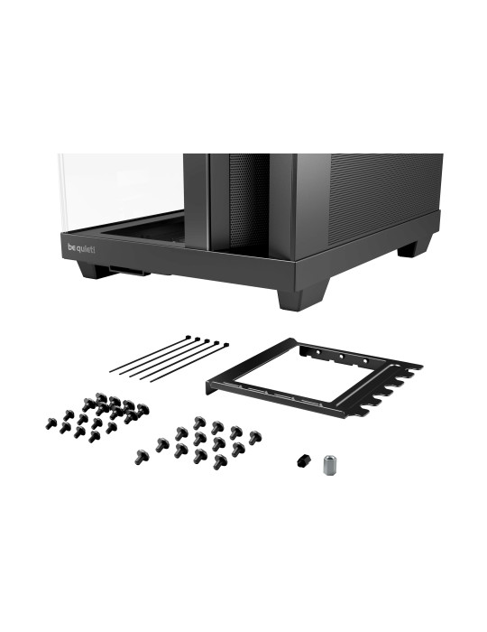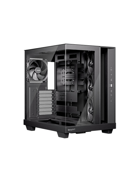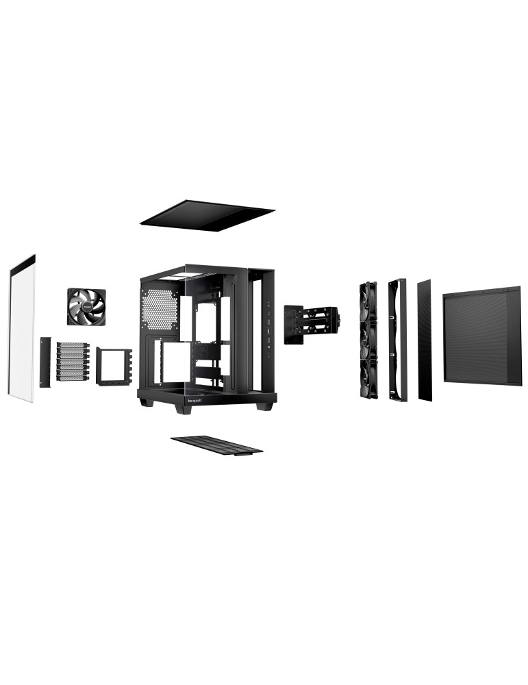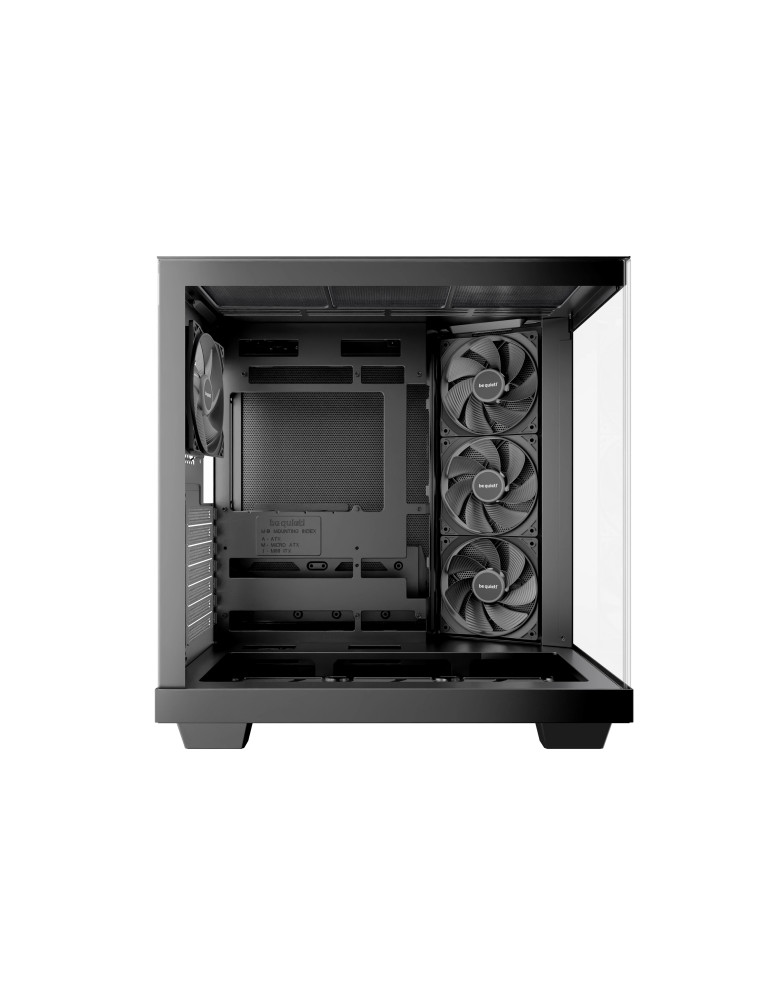 | ДОПЪЛНИТЕЛНИ | 2 possible PSU positions enable backside connector motherboards 4 preinstalled Pure Wings 3 120mm PWM f ans for extraordinary airflow Angled slide-out fan frame on the side routes air directly to the GPU Fans can be installed in the lowered fan bay to line up perfectly with the case floor Spacious design for radiators up to 360mm, an ATX motherboard, 2 HDDs and SSDs at the same time |