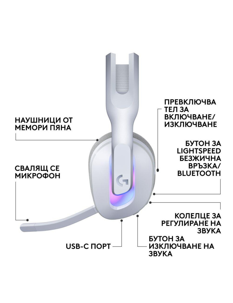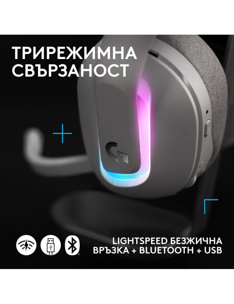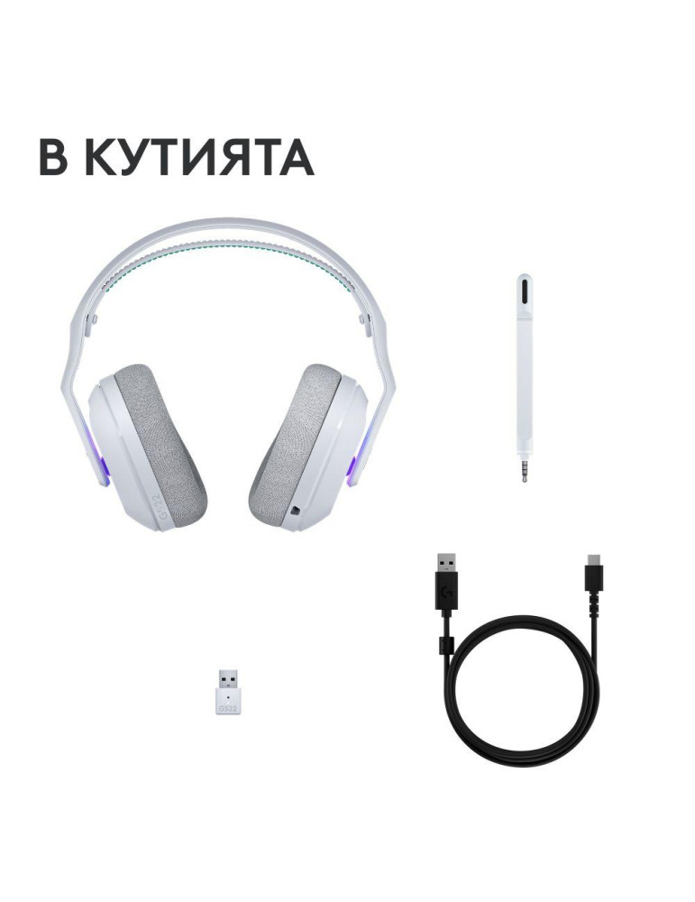 Безжични геймърски слушалки Logitech G522 Lightspeed Wireless RGB, Микрофон, Бели - 981-001550