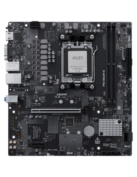 Дънна платка MSI PRO B840M-B, mATX, AM5, 2x DDR5, 2.5G LAN