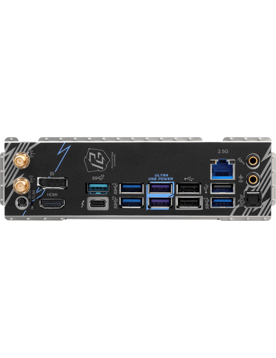 | Вх/Изх | 2 x Antenna Ports;1 x HDMI Port;1 x DisplayPort 1.4;1 x Optical SPDIF Out Port;1 x Thunderbolt™ 4 Type-C Port (40 Gb/s for USB4 protocol; 40Gb/s for Thunderbolt™ protocol);2 x USB 3.2 Gen2 Type-A Ports (10 Gb/s);4 x USB 3.2 Gen1 Ports;3 x USB 2.0 Ports;1 x RJ-45 LAN Port;1 x BIOS Flashback Button;1 x Line Out Jack (Gold Audio Jack);1 x Microphone Input Jack (Gold Audio Jack) |