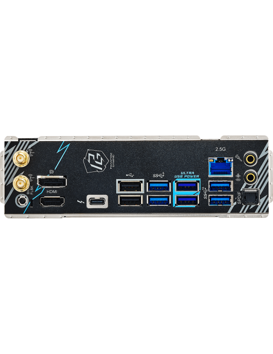 | Вх/Изх | 2 x Antenna Ports;1 x HDMI Port;1 x DisplayPort 1.4;1 x Optical SPDIF Out Port;1 x Thunderbolt™ 4 Type-C Port (40 Gb/s for USB4 protocol; 40Gb/s for Thunderbolt™ protocol);2 x USB 3.2 Gen2 Type-A Ports (10 Gb/s);4 x USB 3.2 Gen1 Ports;2 x USB 2.0 Ports;1 x RJ-45 LAN Port;1 x BIOS Flashback Button;1 x Line Out Jack (Gold Audio Jack);1 x Microphone Input Jack (Gold Audio Jack) |
