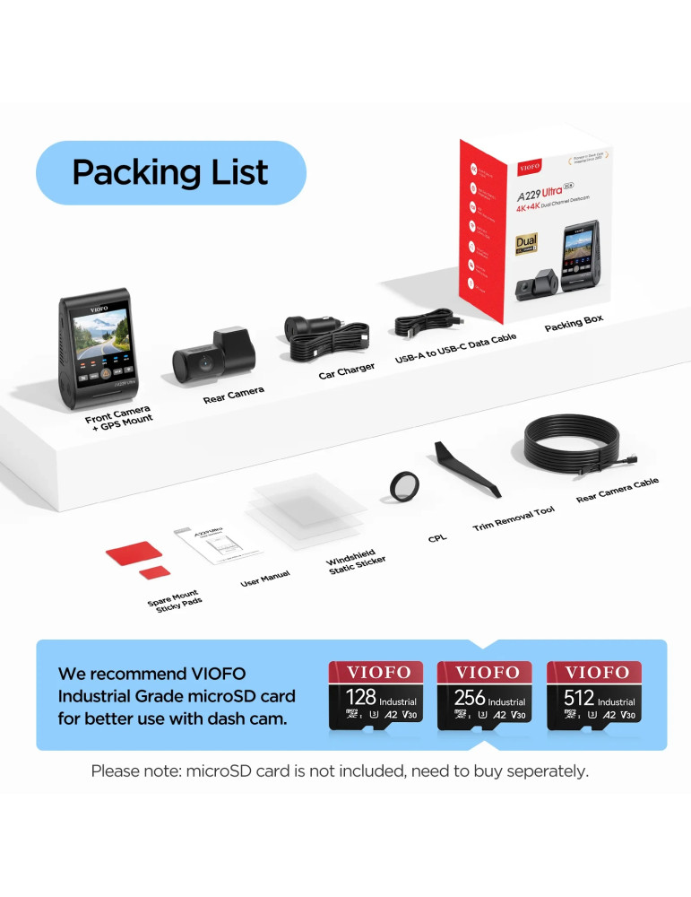Видео регистратор VIOFO Dash Cam A229 Ultra 2 Channel, 4K, HDR, Dual Sony STARVIS 2 8MP, GPS, Bluetooth - VIOFO-A229-ULTRA-2CH