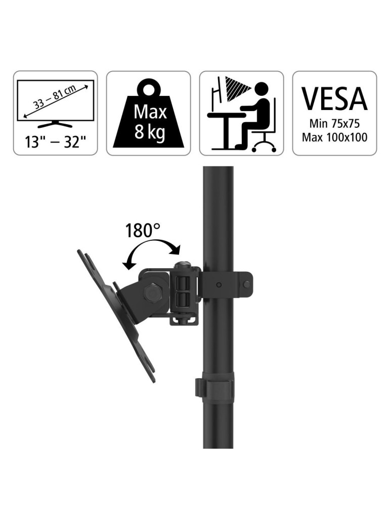 Стойка за 2 монитора за бюро HAMA Регулируема, 13" - 32", 8 кг, Swivel/Tilt, Черна - 118491