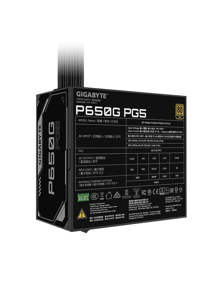 Захранване Gigabyte P650G PG5 650W 80 Gold, PCIe 5.1 - GP-P650G PG5