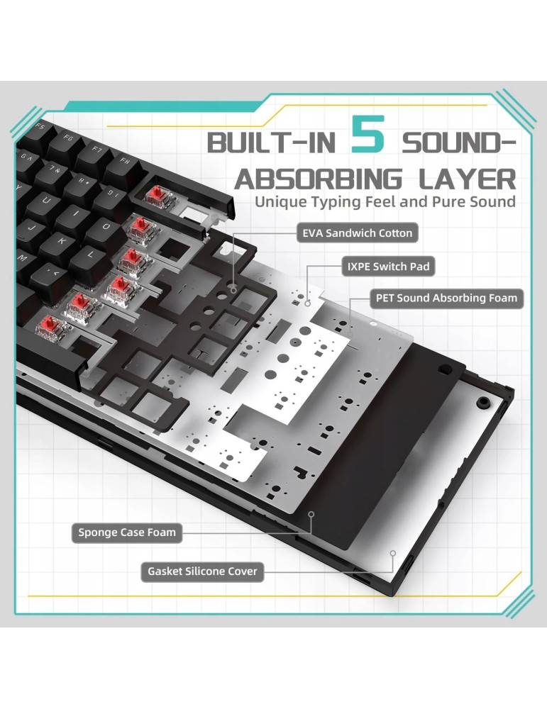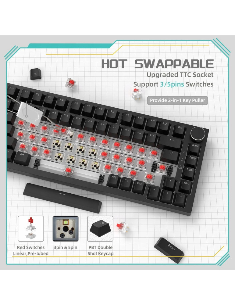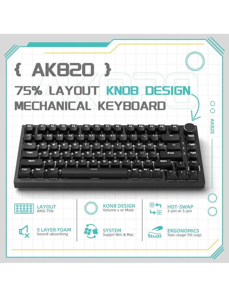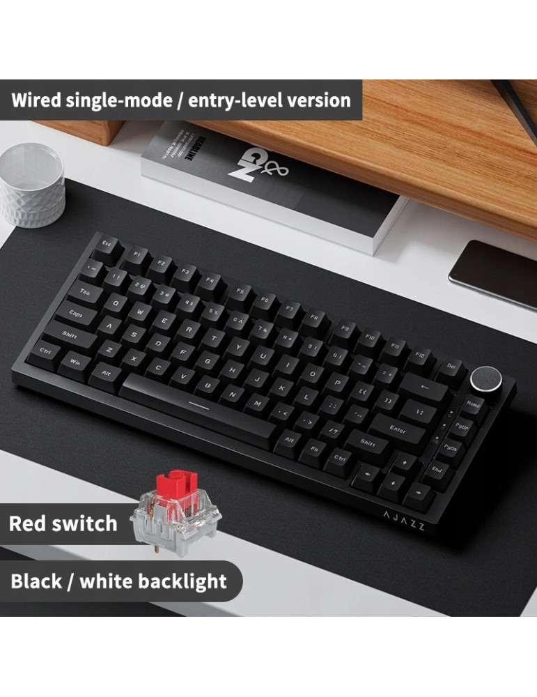 Геймърска механична клавиатура Ajazz AK820 - Red Switches [Linear] (English US), Black, White Backlight - AJ-AK820-RS-BK