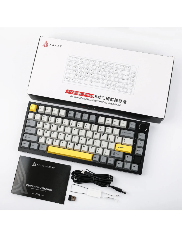 Безжична геймърска механична клавиатура Ajazz AK820 PRO - Flying Fish [Linear] (English US), Black, Gray - AJ-AK820-PRO-BGY-FFS