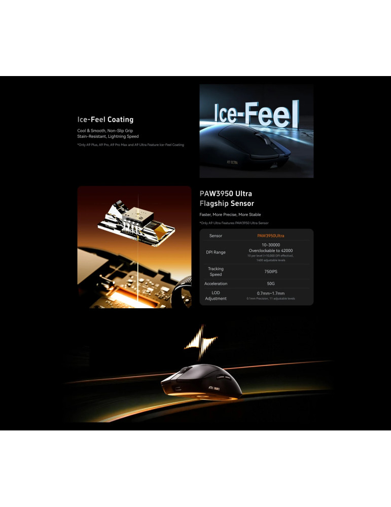 Професионална безжична геймърска мишка ATK A9 Tri-mode Nearlink - 1K, White - ATK-A9-WH